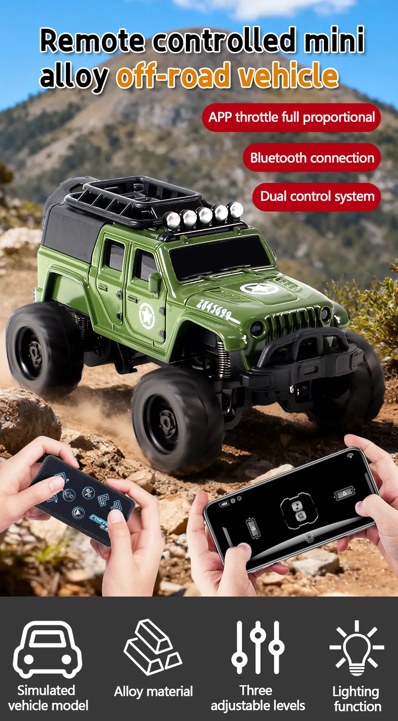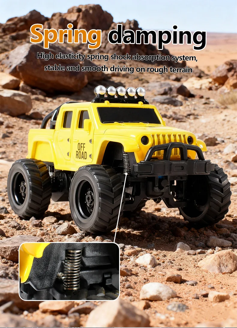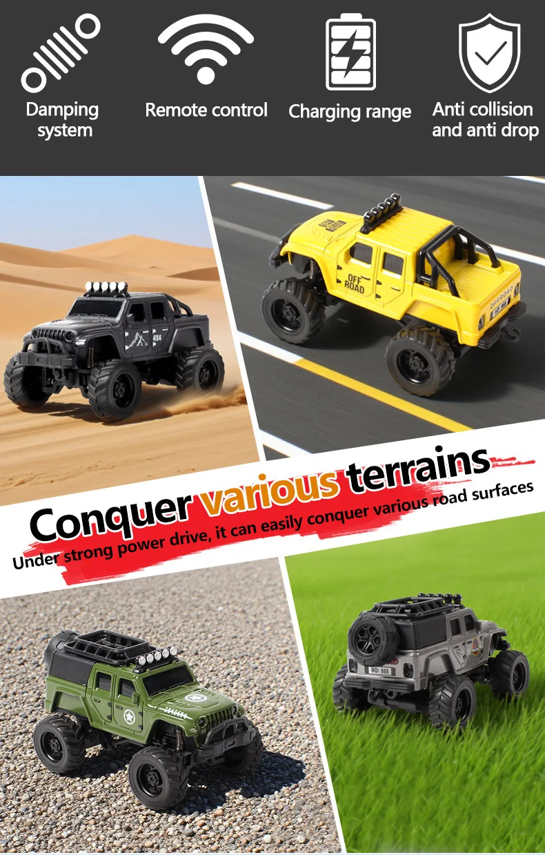 Experience big adventure in a compact size with this Mini Alloy RC Rock Crawler! Designed as a detailed off-road jeep model, this remote control toy car delivers exciting micro-adventures right on your desk or floor. Perfect for kids, hobby lovers, and collectors, it combines durability, performance, and fun in one small package.