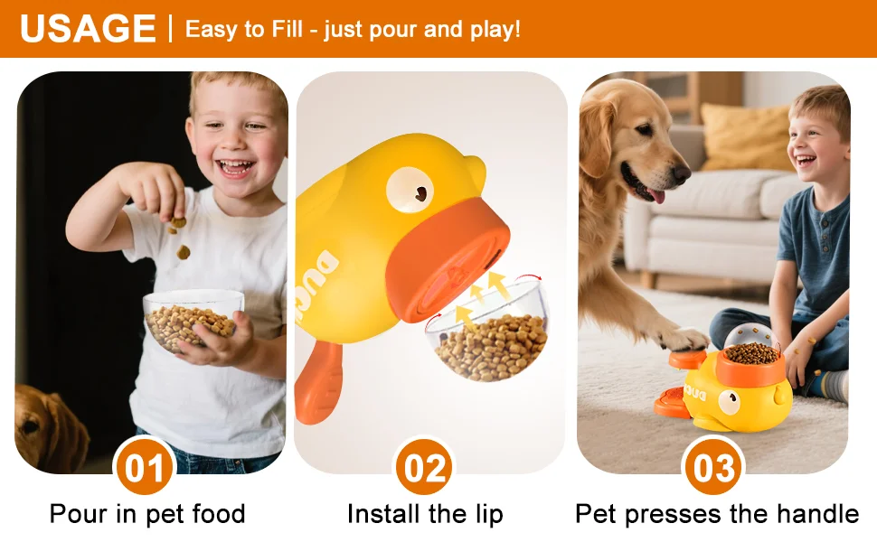 Fun Duck Design: A playful duck-shaped treat dispenser that turns feeding into a game, offering both physical and mental stimulation.